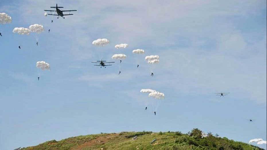 Lính Triều Tiên diễn tập nhảy dù xuống sở chỉ huy Mỹ-Hàn