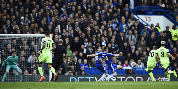 Chelsea đang chơi khá chủ động. Diego Costa vừa lẻn xuống đưa được bóng vào lưới Man City nhưng trước đó trọng tài biên đã căng cờ báo việt vị.