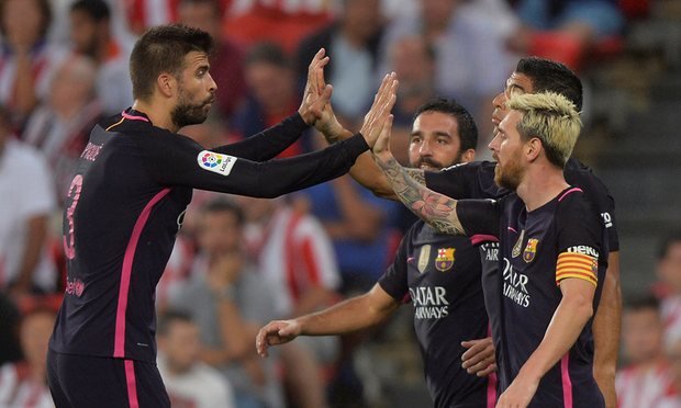 Barca: Ter Stegen; Sergi, Pique, Umtiti (Mascherano 71'), Alba; Busquets, Rakitic, Denis Suarez (Andre Gomes 71'); Messi, Luis Suarez, Arda Turan (Rafinha 84').