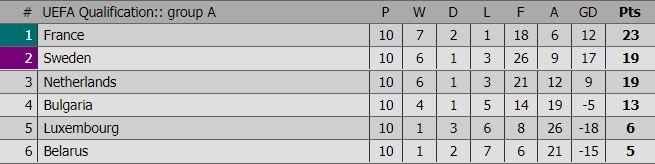 Bảng A: Belarus, Bulgaria, Pháp, Luxembourg, Hà Lan, Thụy Điển