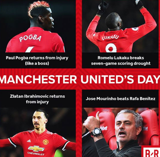 Đáng chú ý là ở trên sân Old Trafford, MU với sự trở lại của những hảo thủ Paul Pogba, Ibrahimovic sau chấn thượng nặng, và cái cách MU chơi bóng sau khi bị ngã ngựa trước Chelsea lượt trước đó. Một thắng lợi khiến thuyền trưởng Mourinho như trẻ ra mấy tuổi, đầy phấn chấn hướng đến chặng đường phía trước.