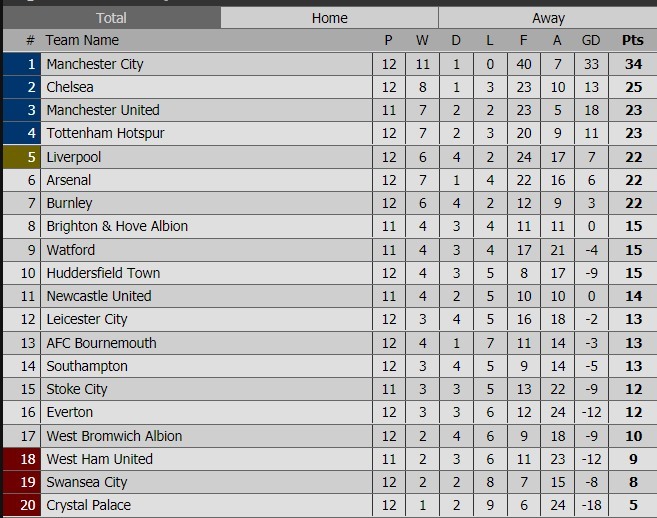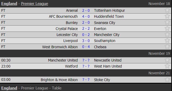 | Lịch thi đấu và kết quả vòng 12 Ngoại hạng Anh |