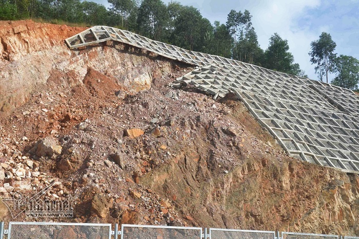 "Khi Bộ GTVT chấp thuận chủ trương (cho gia cố mái ta luy - PV) thì đúng vào mùa mưa không thể thi công được", ông Thành nói. Trong quá trình thi công, đơn vị đã đề xuất Bộ GTVT thay đổi biện pháp gia cố. Đó là lý do có hạng mục bổ sung thi công dở dang như hiện tại.