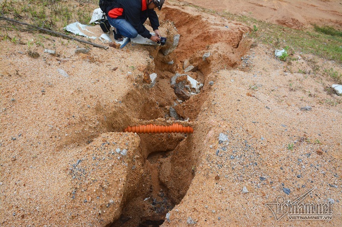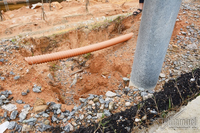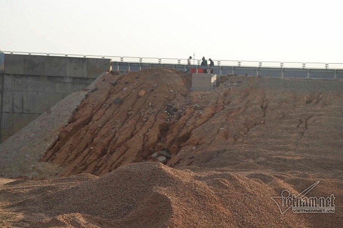 Theo ông Thành, các vị trí sạt lở mái dốc ta luy dương ở đây thuộc hạng mục bổ sung ngoài hợp đồng và đơn vị gia cố chưa xong.