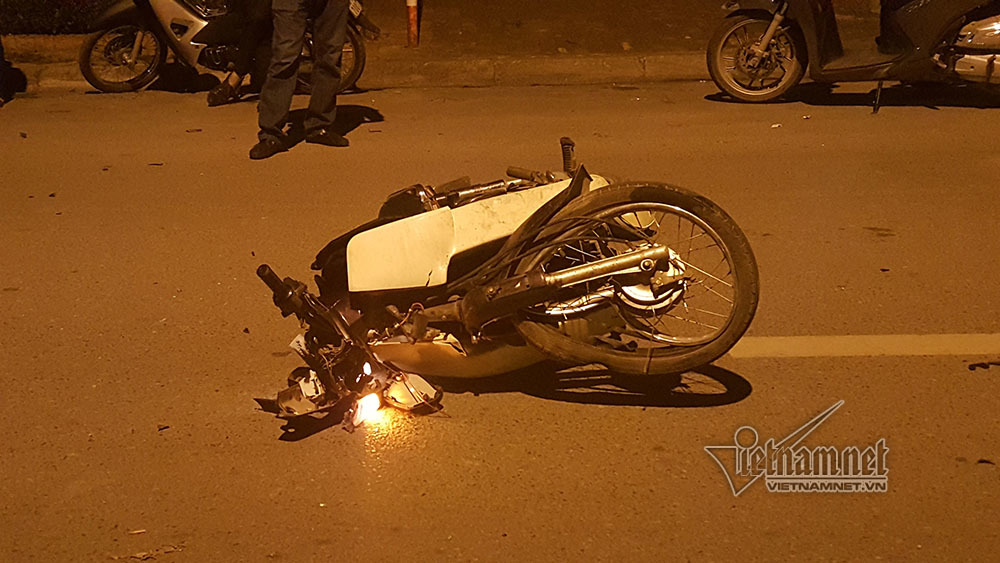 Tai nạn giữa 2 xe máy trên cầu vượt Thái Hà - Chùa Bộc lúc nửa đêm khiến một người tử vong, 2 người bị thương nặng.