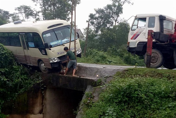 Tối nay, ông Nguyễn Đình Huy, Trưởng công an xã Sơn Lộc (Can Lộc, Hà Tĩnh) cho biết, trên địa bàn vừa xảy ra vụ tai nạn khi xe khách 24 chỗ đánh lái tránh đâm vào vách núi khi bị xe tải chạy ngược chiều lấn đường.