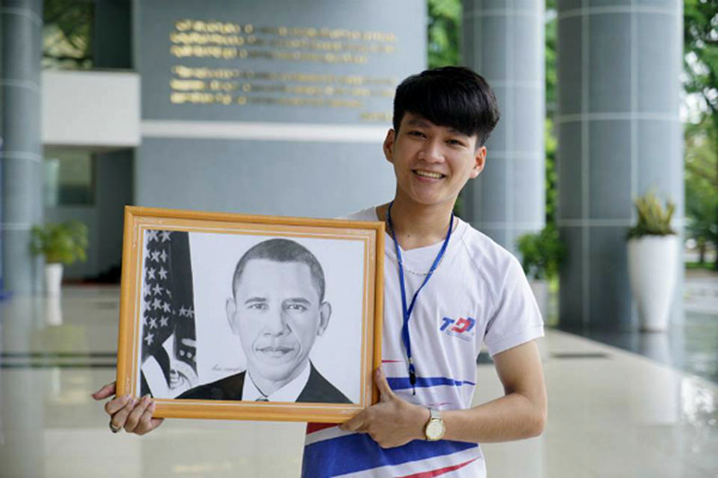 | Bức tranh cậu vẽ cựu Tổng thống Mỹ Barack Obama |