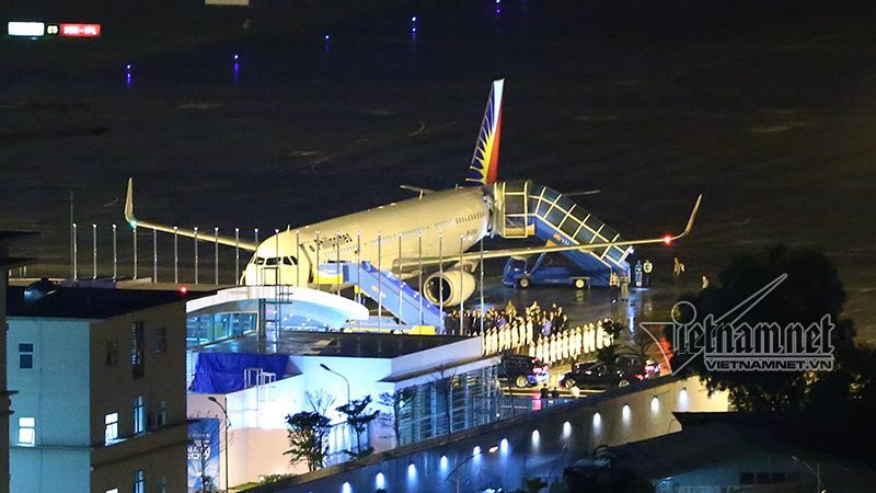 Chuyên cơ chở Tổng thống Rodrigo Duterte và đoàn đại biểu Philippines đến Việt Nam tham dự Hội nghị cấp cao APEC vừa hạ cánh xuống sân bay quốc tế Đà Nẵng.