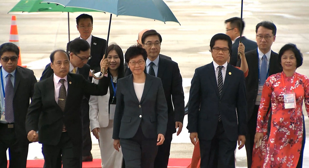 Trưởng đặc khu hành chính Hồng Kông (Trung Quốc) Lâm Trịnh Nguyệt Nga (Carrie Lam) dẫn đầu đoàn đại biểu nền kinh tế Hồng Kông đã đáp chuyến bay thương mại đến Đà Nẵng.