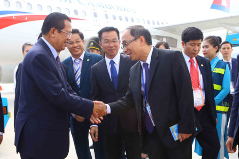 Nhận lời mời của Chủ tịch nước Trần Đại Quang, Đoàn lãnh đạo Cấp cao nền kinh tế Campuchia, do Thủ tướng Campuchia Samdech Techo Hun Sen dẫn đầu tham dự Tuần lễ Cấp cao APEC 2017 đã đến Đà Nẵng trưa nay.