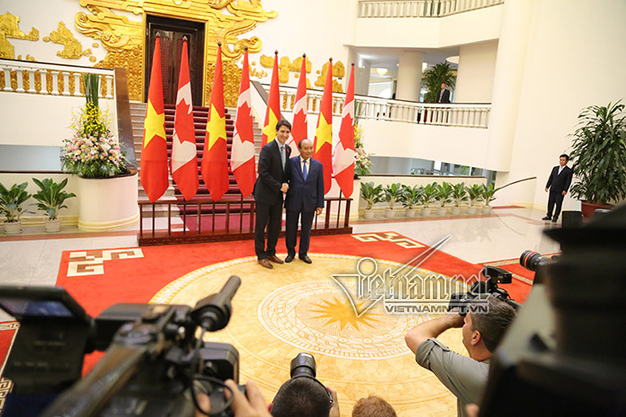 | Thủ tướng Nguyễn Xuân Phúc và Thủ tướng Canada Justin Trudeau. Ảnh: VGP |