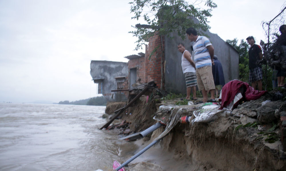 Ghi nhận tại hiện trường, sóng biển đã nhấn chìm 4 căn nhà, diện tích rừng phòng hộ, rừng dương đã trôi ra biển và đường cống thoát nước tại tuyến bờ đông sông Kinh đi Cửa Đại bị sạt lở. Một số nhà dân như nằm bên bờ vực, bên dưới là dòng nước lũ chảy xiết tiếp tục gây sạt lở.