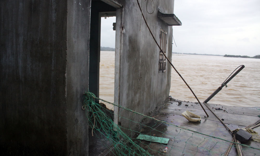 Thoát khỏi căn nhà đổ nát, bà Đây đứng bần thần nhìn sóng biển nuốt trọn nhà kho hàng hóa và kho xăng dầu cuốn trôi về phía biển. Gia đình bà Đây mất trắng trên 1 tỷ đồng.