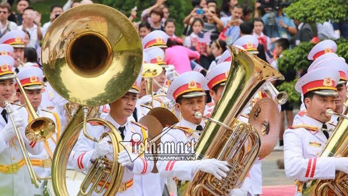 Hình ảnh đội danh dự Quân đội nhân dân VN trong lễ đón chính thức Tổng thống Obama sáng nay ở Phủ Chủ tịch.
