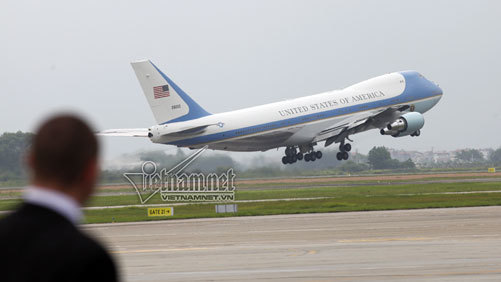 14h15, chuyên cơ Không lực 1 (Air Force One) chở Tổng thống Obama cất cánh từ sân bay Nội Bài. Dự kiến 15h45 ông Obama sẽ đặt chân tới Tân Sơn Nhất.