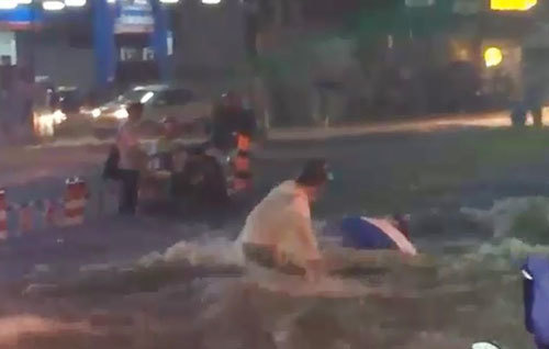 19h một số tuyến vẫn chìm sâu trong nước khiến xe cộ chết máy hàng loạt phải bì bõm lội sông. Nhiều người phải dẫn bộ xe hàng kilomet để tìm chỗ sửa xe.
