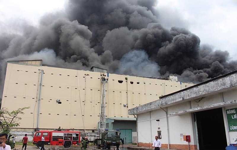 Hàng trăm cảnh sát đã thức trắng đêm để chiến đấu với “biển lửa” tại công ty may. Ước tính thiệt hại ban đầu lên đến hàng triệu USD.