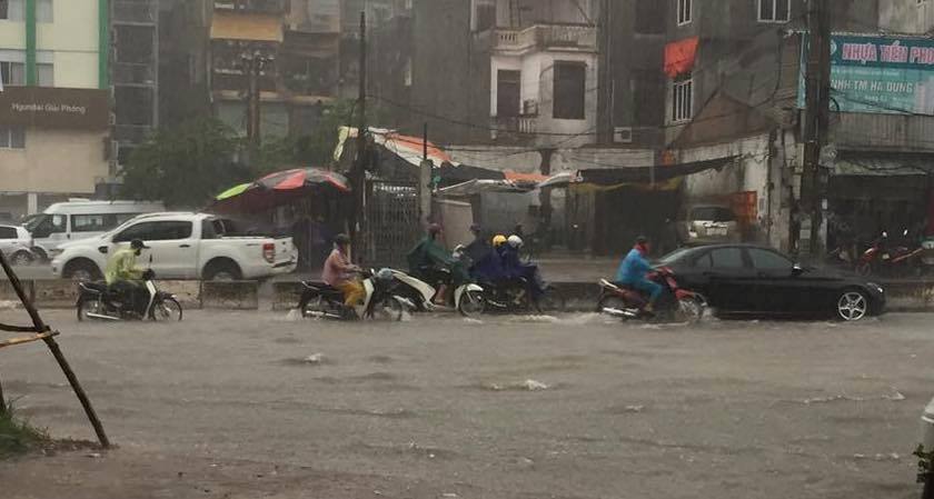 Hà Nội: Cả loạt phố lập tức ngập dưới mưa sầm sập