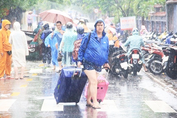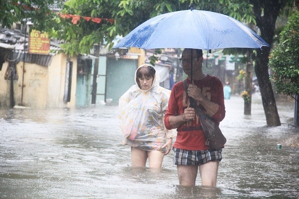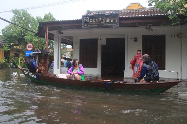 Khách Tây hối hả rời khỏi khu phố cổ chạy lũ |