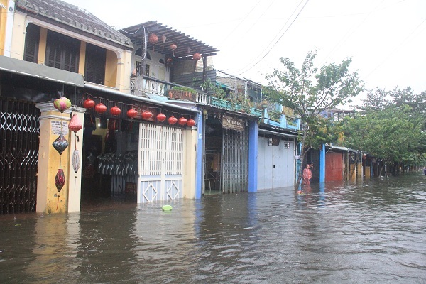 | Các tuyến đường trung tâm ở phố cổ Hội An bị ngập sâu |