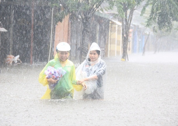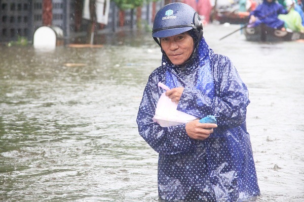 Đến trưa nay, khu phố cổ đã thất thủ trong nước lũ. Một số tuyến đường như Phan Chu Trinh, Trần Phú, đường ven sông Hoài ngập sâu trong lũ.