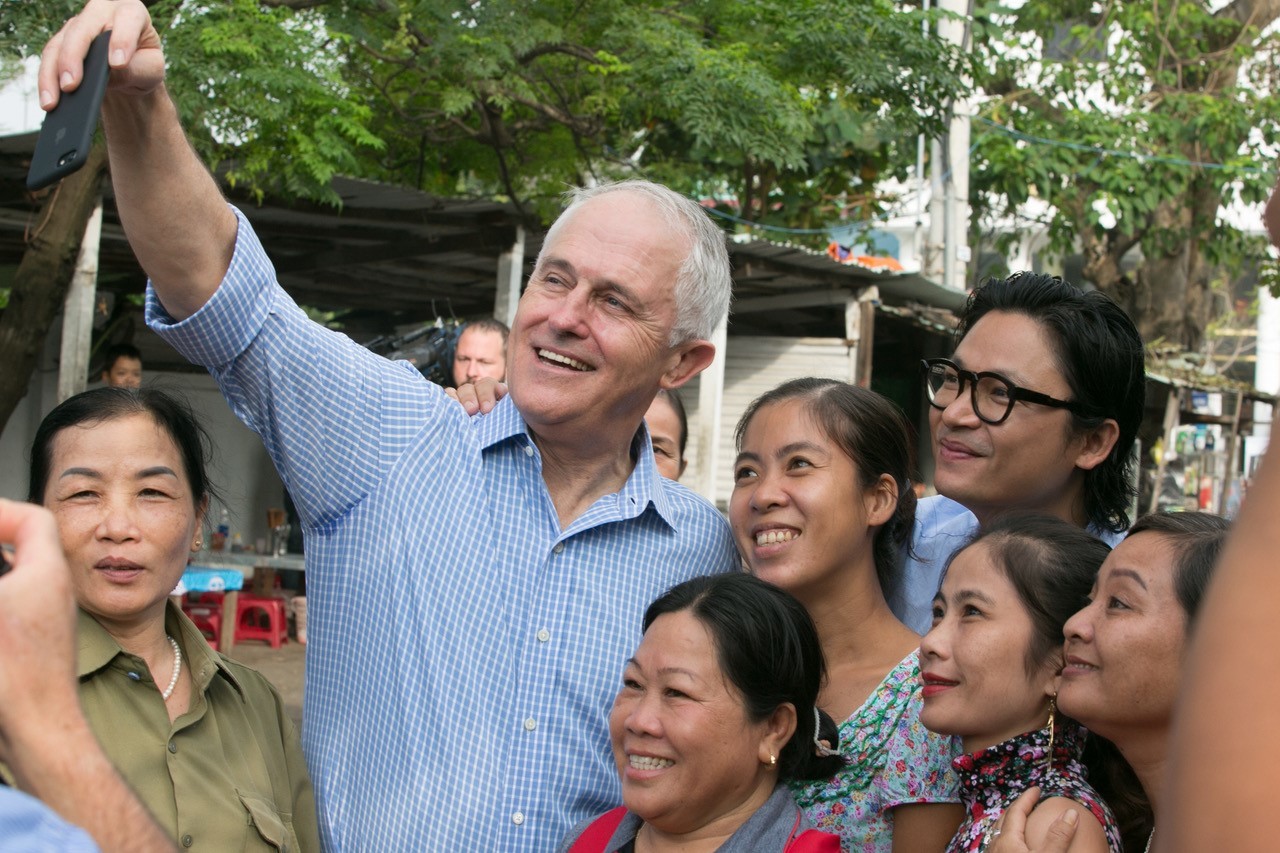 | Thủ tướng Turnbull và ông Luke Nguyễn cùng chụp ảnh với người dân |