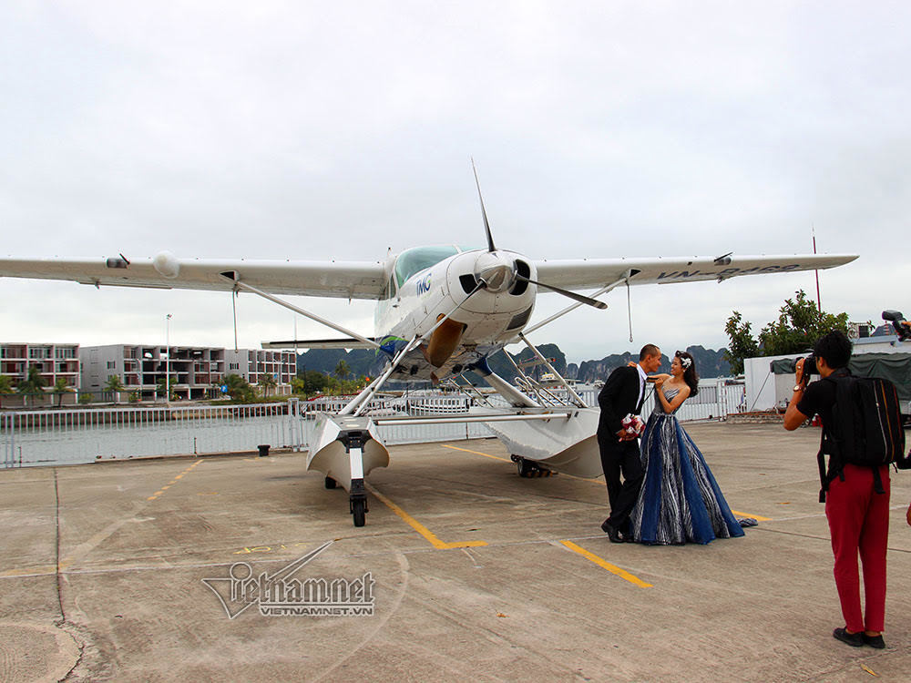| Cặp đôi chụp ảnh cưới bên thủy phi cơ ở bãi đỗ Tuần Châu |