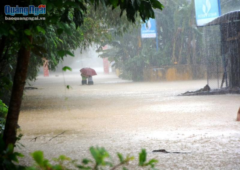 Trong 12h qua (từ 19h đêm qua đến 7h sáng nay) mưa rất to. Tổng lượng mưa phổ biến từ 100-180mm, một số nơi mưa đặc biệt to như Trà Bồng: 271mm, Châu Ổ: 222mm, Ba Tơ: 219mm. Dự báo lũ trên sông Trà Bồng sẽ cao hơn đỉnh lũ năm 1999 là: 0.35m.