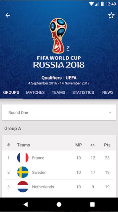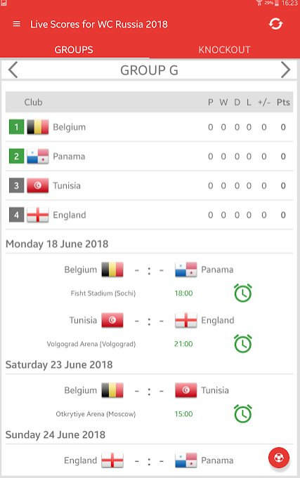 Đây là ứng dụng không chỉ tiện ích mà còn có giao diện dễ nhìn với 3 thông tin chính là lịch thi đấu, trận đấu và bảng đấu. Người dùng có thể tùy chỉnh để cập nhật thông tin trận đấu từ đội mình yêu thích như về thời gian, địa điểm, các đội tham gia World Cup 2018 theo thời gian thực mà trận đấu đang diễn ra.