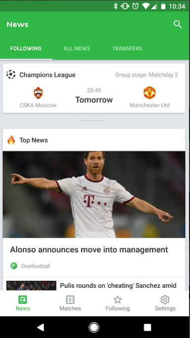 Với Onefootball Live Soccer Scores, tất cả người dùng iPhone và Android đều có thể cập nhật tin tức bóng đá, tiến độ và kết quả các trận đấu đang quan tâm và các trận đấu khác. Chức năng "Favourite" trên ứng dụng còn giúp bạn lọc các đội yêu thích, cập nhật thông báo trên màn hình liên tục nếu như các đội này có những pha giao bóng nguy hiểm và tỷ số nào.