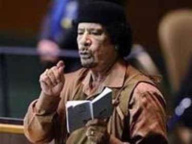 Tháng 8 năm 2009, ý định dựng lều tại ngoại ô thành phố New York để ở trong thời gian đến dự lễ khai mạc Đại hội đồng LHQ của Tổng thống Libya bị một số quan chức Mỹ phản đối, sau đó ông phải chuyển căn lều sang bang New Jersey.