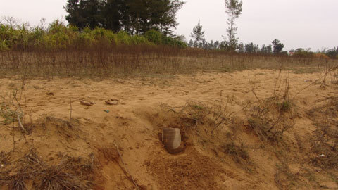 Trước đó, trong lúc người dân khai thác cát đã tìm thấy hũ tiền này, sau đó, họ đập hũ tiền và lấy đi khoảng 20kg tiền cổ trong hũ.