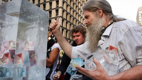 Gần 1000 đô la Úc bị đông cứng trong một tảng băng to. Những tờ tiền nằm xen kẽ nhau và hiển hiện rõ mồn một khiến cho không ai có thể làm ngơ được. Đây đúng là một chiêu PR rất hiệu quả của một cửa hàng để thu hút khách hàng đến với mình trong ngày khai trương. Số tiền trong tảng băng 1.000 đô la Úc (tương đương 911USD) sẽ được "khuyến mãi" cho những người khách đi mua hàng. Sau khi có được những đồng tiền này họ sẽ ghé qua cửa hàng mua đồ.