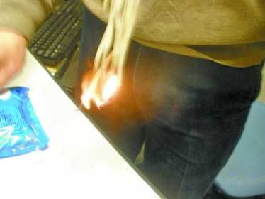 Kết quả là, sợi mì khi được tẩm ướt vẫn bắt lửa cháy bình thường và có thể cháy hết cả sợi. Khi cháy, sợi mì có mùi khét như mùi da cháy. Phần sợi mì chưa cháy hết thì có màu đen và trở nên cứng.