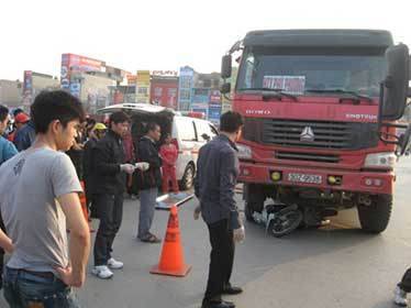 Người điều khiển chiếc xe máy trên là một cô gái trẻ. Cú tông mạnh đã làm chiếc xe máy đổ xuống đường. Cô gái bị cuốn vào gầm, bánh trước của xe tải chèn lên đầu và người tử vong ngay tại chỗ.