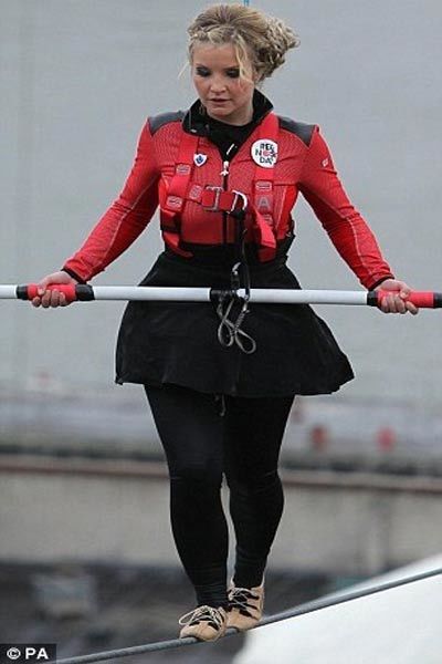 Ngôi sao chương trình Blue Peter của nước Anh - Helen Skelton - đã làm nên một kỳ tích ngoạn mục khi đã đi thăng bằng trên một sợi dây dài 150m chỉ trong 11 phút.