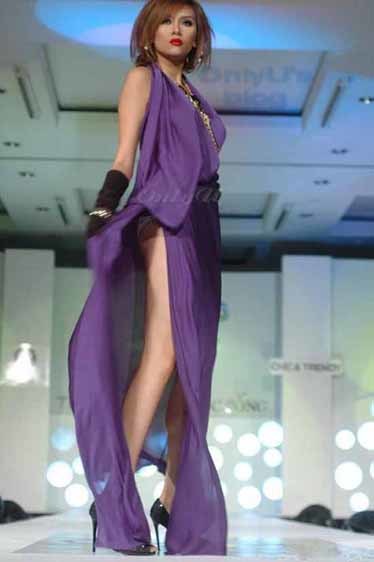 Trước đó trong một show diễn thời trang khác, Hoàng Yến cũng bị cho là diễn quá “sung” mà quên mất chiếc váy tím mình đang mặc bị xẻ quá cao, khiến vòng 3 của cô được dịp “phô diễn