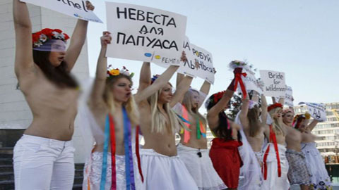 Một nhóm 9 cô gái Ucraina đã khoả thân để biểu tình phản đối cuộc thi "Giành vợ" do một đài phát thanh của New Zealand tổ chức.