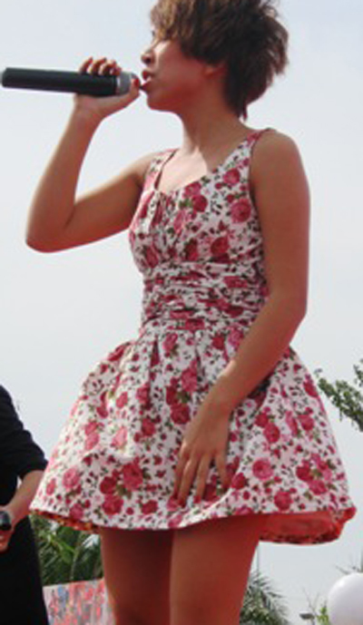 không lường sức gió của sân khấu ngoài trời, ca sĩ đã bị chiếc váy ngắn làm cho