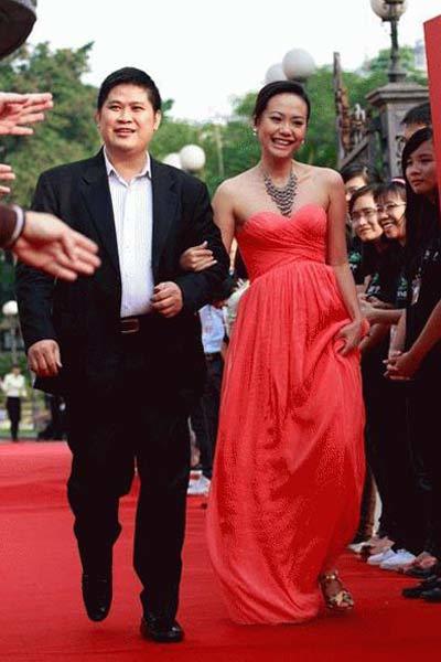 | Hồng Ánh xuất hiện rạng ngời bên nhà làm phim/diễn viên Phước Sang trên thảm đỏ LHP quốc tế (Ảnh: VietNamNet) |