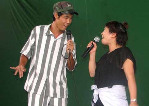 | Diễn viên hài Hiệp Gà diễn văn nghệ khi ở trại giam (Ảnh: Thể thao văn hóa) |