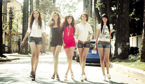| Huỳnh Tiên (ngoài cùng bên phải) chụp chung với 4 người bạn khác trong “Đêm hội chân dài 4), trong đó có cả Hoa hậu TGNV Diễm Hương (ngoài cùng bên trái) |