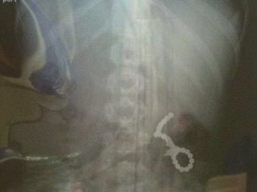 Ảnh: Các viên nam châm trong dạ dày bé trai (Ảnh: Dailymail)