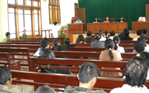 Quang cảnh phiên tòa xét xử sơ thẩm Đinh Thiên Bảo |