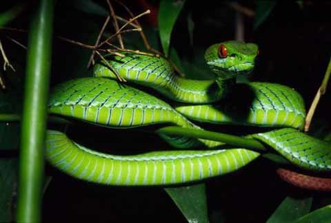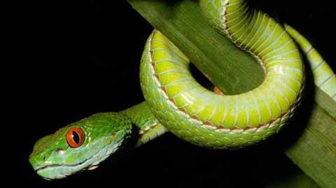 Rắn lục có đôi mắt màu hồng ngọc Cryptelytrops rubeus - Ảnh: Jeremy Holden/National Geographic