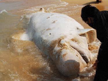 Người dân phát hiện con cá voi dạt vào bờ trong tình trạng trên mình có nhiều thương tích, nhiều lỗ thủng. Nhiều khả năng con cá voi này đã chết từ 3 - 4 tuần trước bởi thân cá đã bắt đầu bị phân huỷ, mùi hôi thối bốc lên nồng nặc. Có thể nó đã bị các tàu thuyền săn bắt dẫn đến bị thương và bơi vào gần bờ thì chết.