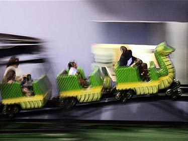 đoàn tàu đồ chơi tại công viên Go Bananas thì bị rơi xuống đường ray.