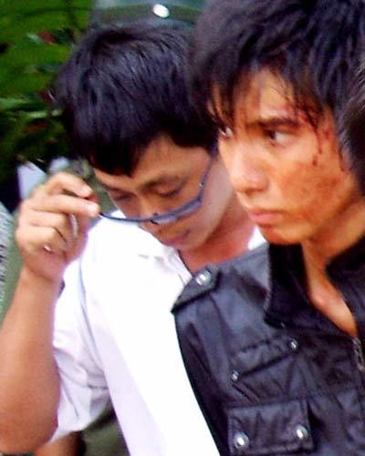 | Đối tượng Nguyễn Châu Đức Tài khi bị bắt, trên người có nhiều vết máu (Ảnh: VnExpress). |