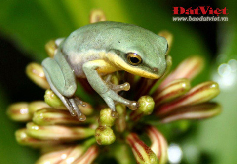 Đây là nơi trú ngụ của gần 20 loài ếch nhái quý hiếm, như loài chẫu chàng xanh đốm trong ảnh.