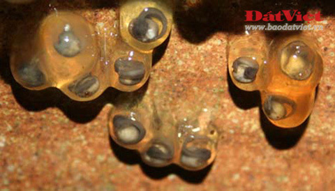 Nòng nọc của loài ếch cây sần bắc bộ đang phát triển bên trong trứng.